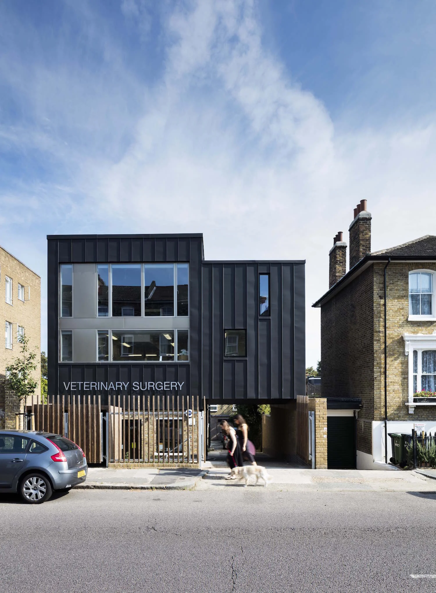 This refurbishment and extension of a veterinary surgery in Lewisham provides an additional 200sqm of surgery space over two additional floors and means that the practice will now qualify for RCVS hospital status. The new extension was constructed from cross laminated timber, allowing the surgery to remain operational during construction.
